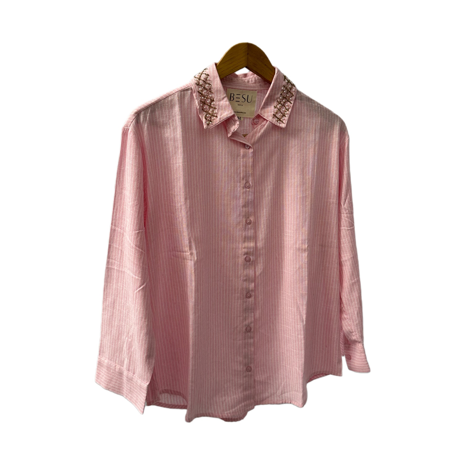 LIGHT PINK STRIPED SHIRT WITH EMBROIDERED COLLAR